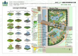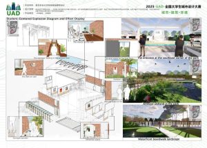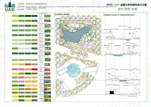 作品描述:场地选择于校园东南角,一块链接主教学楼与艺术楼之间的空地。由于场地西侧联合四周环路且无人维护,造成了场地零使用率和杂草丛生的现象。本设计解决了可达性的问题,生态环境缺失的问题,为使用人群们提供了多样化的活动集合。