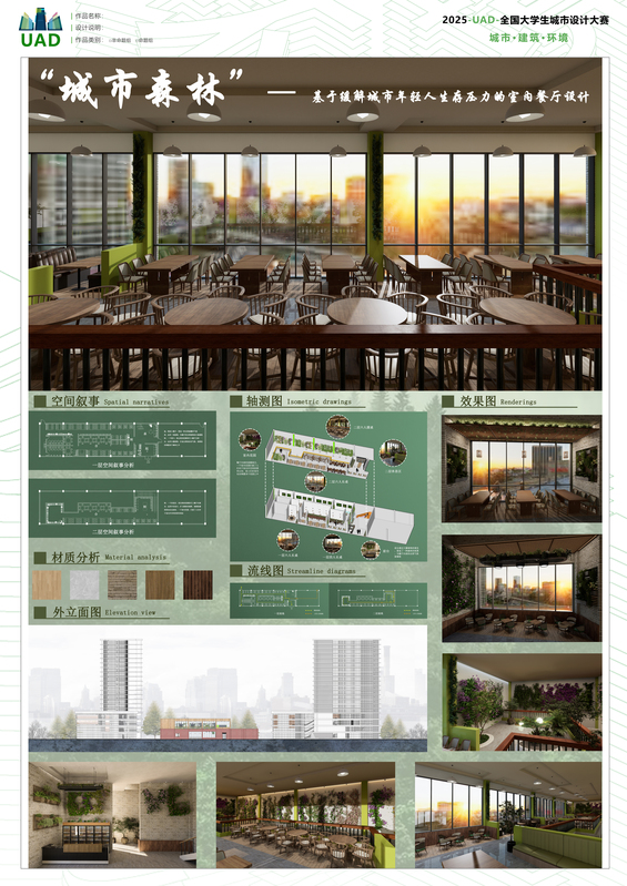 作品名称:城市森林—基于缓解城市年轻人生存压力的室内餐厅设计