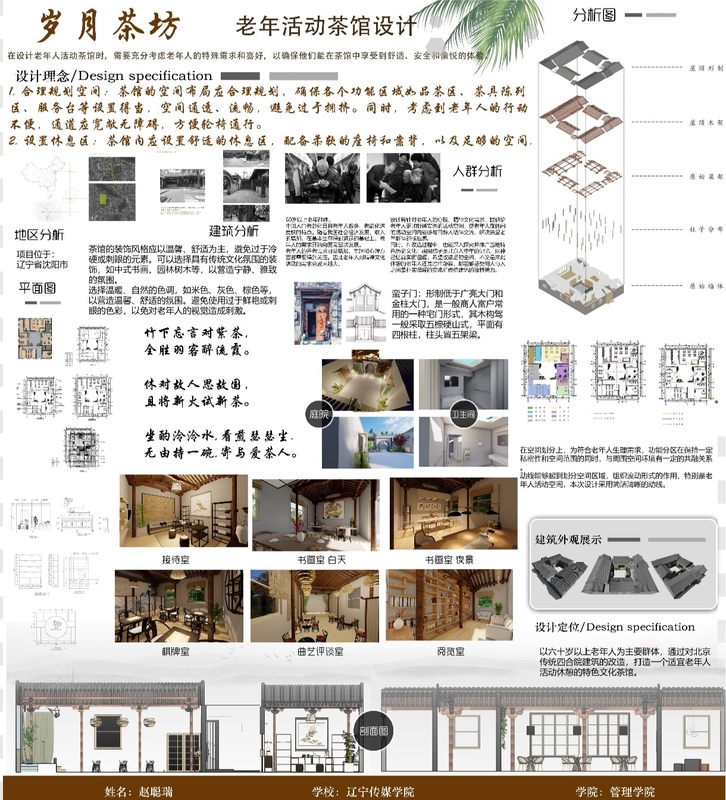 作品名称:岁月茶坊 参赛组别:本科生研究生组 参赛类别:餐饮娱乐休闲空间 作品描述:岁月茶坊–老年活动茶馆设计 作品展图: 声明:本站所有文章,如无特殊说明或标注,均为本站原创发布。任何个人或组织,在未征得本站同意时,禁止复制、盗用、采集、发布本站内容到任何网站、书籍等各类媒体平台。如若本站内容侵犯了原著者的合法权益,可联系我们进行处理。